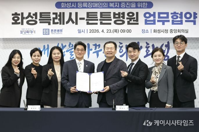 (케이시사타임즈) 화성특례시는 23일 본관 2층 중앙회의실에서 튼튼병원과 화성시 등록장애인의 건강한 생활 지원과 삶의 질 향상을 위한 업무협약을 체결했다.