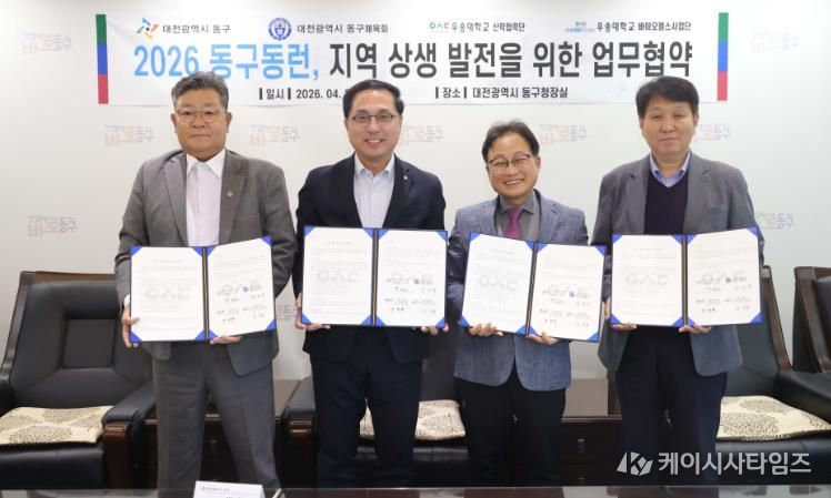 (케이시사타임즈) 대전 동구는 23일 구청장 접견실에서 우송대학교‧동구 체육회와 ‘동구동런(Run)’ 운영 활성화를 위한 업무협약을 체결했다고 밝혔다.