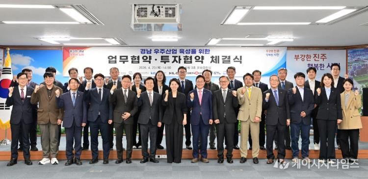 (케이시사타임즈) 경상남도와 진주시는 23일 진주시청 문화강좌실에서 경상국립대학교, 한국산업기술시험원(KTL), 우주 분야 기업 4개 사와 함께 경남 우주산업 육성을 위한 업무협약 및 투자협약을 체결했다.