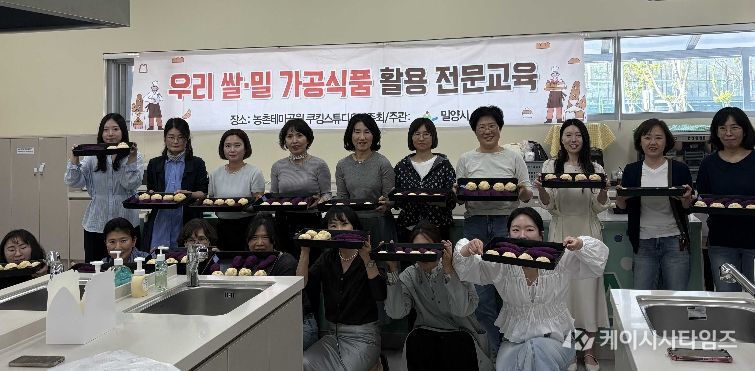 (케이시사타임즈) 경남 밀양시는 지난 21일과 23일 이틀간 선샤인 밀양 테마파크에서 우리 쌀·밀의 소비 확대와 건강한 식문화 정착을 위해 관내 학교 초·중·고등학교 영양교사 37명을 대상으로 ‘우리 쌀·밀 가공식품 활용 전문교육’을 실시했다.