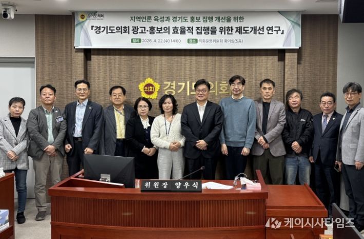 (케이시사타임즈) 경기도의회 의회운영연구회(위원장 양우식)는 지난 22일 의회운영위원회 회의실에서 '경기도의회 광고·홍보의 효율적 집행을 위한 제도개선 연구' 용역 중간보고회를 개최했다.