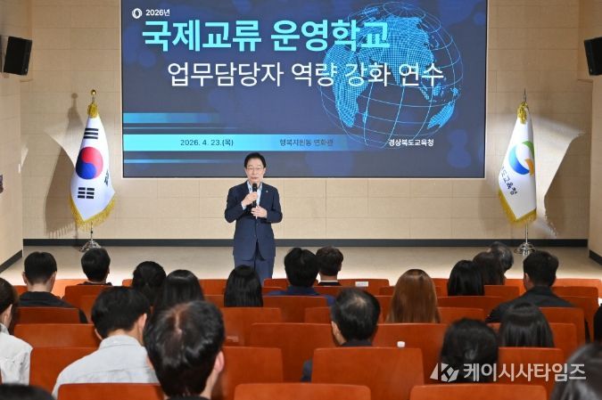 (케이시사타임즈) 경북교육청은 23일 본청 행복지원동 연화관에서 도내 국제교류 운영교 업무 담당자와 관리자 등 150여 명이 참석한 가운데 ‘2026년 국제교류 운영학교 업무 담당자 역량 강화 연수’를 개최했다고 밝혔다.