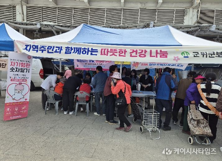 (케이시사타임즈) 군위군보건소는 4월 23일 군위읍 전통시장에서 군위군자원봉사센터와 연계한‘자원봉사가 꽃피는 오일장’행사에 참여해 지역주민의 건강 증진을 위한‘지역주민과 함께하는 따뜻한 건강 나눔’홍보 부스를 운영했다.