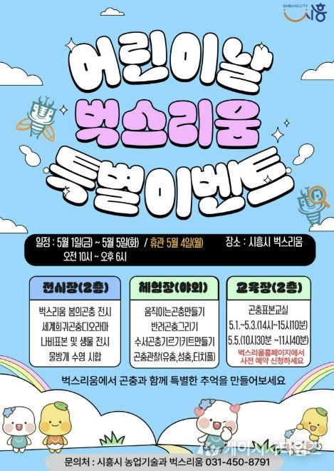 (케이시사타임즈) 시흥시 곤충체험전시관 ‘벅스리움’은 어린이날을 맞아 아동과 가족이 함께 즐길 수 있는 ‘특별 프로그램’을 오는 5월 1일부터 5일까지 운영한다.