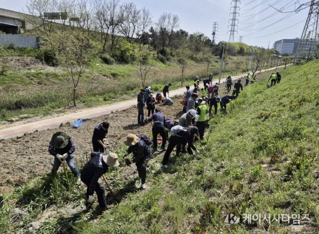 (케이시사타임즈) 시흥시는 ‘대한민국 새단장 및 지구의 날(4월 22일)’을 맞아 지난 4월 23일, 시흥천 일대에서 명예환경감시원과 함께 ‘생태계 교란식물 퇴치 및 환경정화 활동’을 실시했다.
