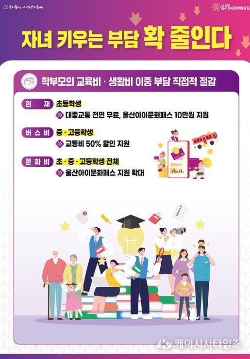 (케이시사타임즈) 울산시가 초·중·고 자녀를 둔 학부모의 교육비 부담을 덜기 위해 ‘울산형 시민체감 교육지원 사업’을 대폭 확대한다.
