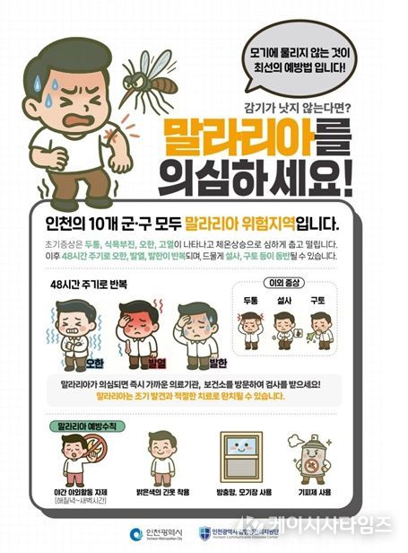 (케이시사타임즈) 인천광역시는 오는 4월 25일 ‘세계 말라리아의 날’을 맞아 본격적인 모기 활동 시기에 대비해 시민들에게 국내 말라리아 감염 예방과 조기 검사의 중요성을 당부했다.
