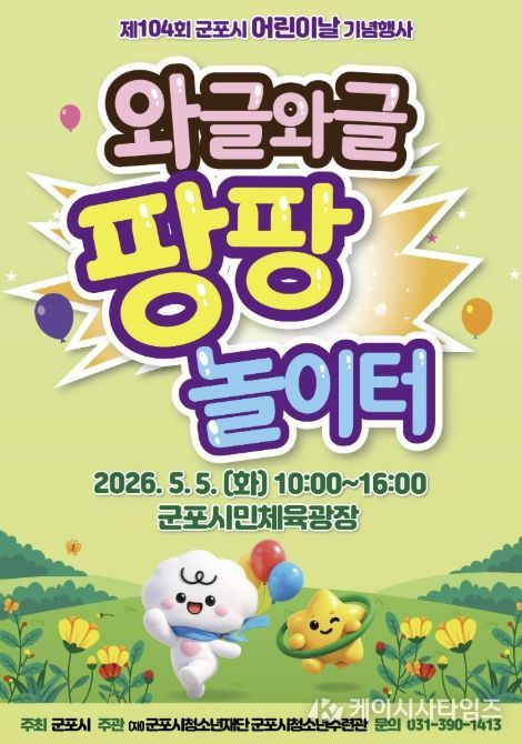 (케이시사타임즈) 군포시는 제104회 어린이날을 맞아 오는 5월 5일 오전 10시부터 오후 4시까지 군포시민체육광장에서 ‘와글와글 팡팡 놀이터’를 주제로 어린이날 기념행사를 개최한다.