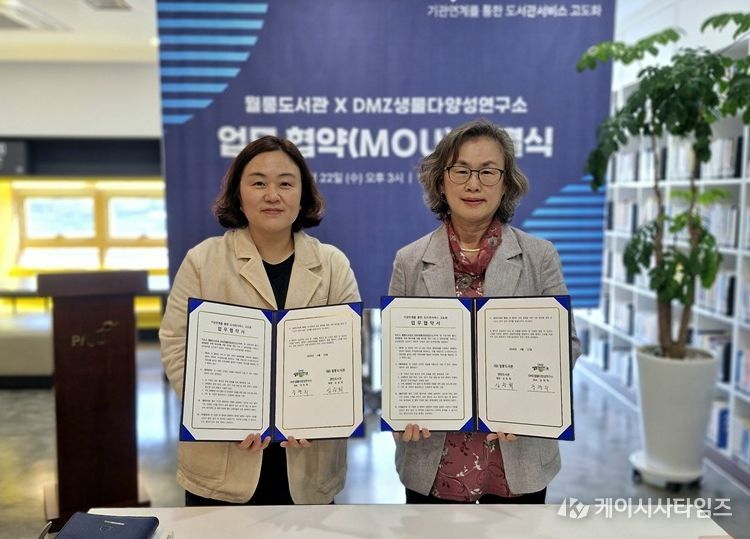 (케이시사타임즈) 파주시 월롱도서관은 지난 22일 디엠지(DMZ)생물다양성연구소와 지역사회 독서진흥 및 생태환경 분야 협력을 위한 업무협약을 체결했다.