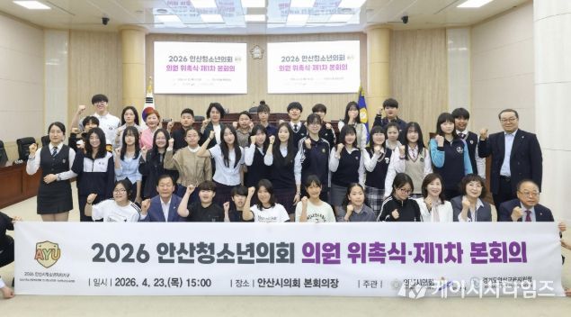 (케이시사타임즈) 안산청소년의회가 지난 23일 열린 ‘2026 안산청소년의회 의원 위촉식’과 ‘안산청소년의회 제1차 본회의’를 시작으로 본격적인 활동에 들어갔다.