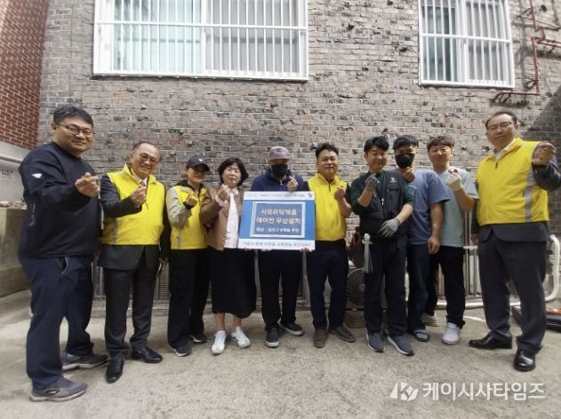 (케이시사타임즈) 지난 23일 수원시 권선구 호매실동 지역사회보장협의체는 업무협약을 맺은 수원남부로타리 클럽과 주거환경개선 특화사업의 일환으로, 반지하 빌라에 거주하는 취약계층 어르신 댁에 에어컨을 설치했다.