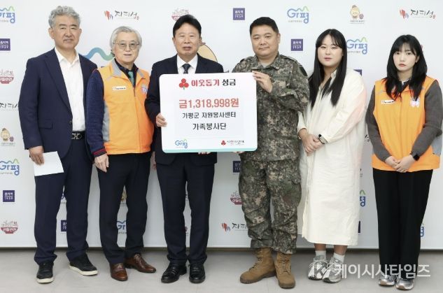(케이시사타임즈) 가평군 자원봉사센터 가족봉사단은 23일 가평군청 군수실에서 이웃돕기 성금 기탁 전달식을 가졌다. 이날 행사에는 서태원 가평군수를 비롯해 연기복 가족봉사단 회장, 이명열 가평군 자원봉사센터장 등이 참석했다.