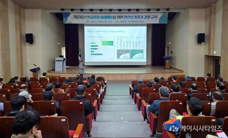 (케이시사타임즈) 영덕군은 산림 현장의 안전사고를 예방하고 근로자의 보건 안전을 강화하기 위해 지난 23일 영덕 로하스 수산식품지원센터에서 ‘산림사업 재해예방 안전보건 관리 강화교육’을 시행했다.