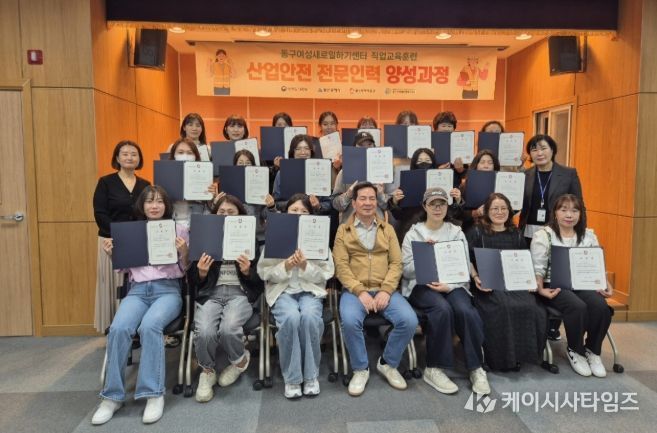 (케이시사타임즈) 울산 동구여성새로일하기센터는 4월 24일 오전 9시 30분 동구 노동자지원센터 3층 강당에서 ‘산업안전 전문 인력 양성 과정’ 수료식을 개최하고, 총 20명의 수료생을 배출했다.