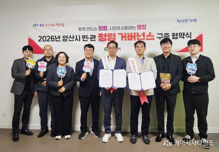 (케이시사타임즈) 양산시 미래혁신국(국장 장병조)은 투명하고 공정한 행정 실현을 위해 관내 주요 유관기관과 ‘민·관 청렴 거버넌스 협약’을 체결했다고 밝혔다.