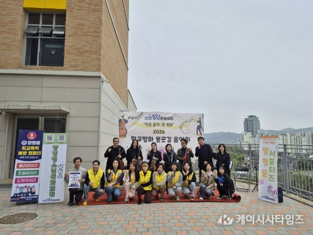 (케이시사타임즈) 양평청소년문화의집은 지난 22일 양평중학교에서 지역 연계 사업 ‘양청문서포터즈’를 통해 ‘학교평화 등굣길 음악회’를 운영하고 학교폭력 예방 캠페인을 진행했다.
