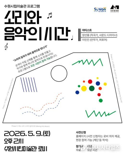 (케이시사타임즈) 경기도 수원시립미술관은 을 맞아 소리를 주제로 한 음악 프로그램 '소리와 음악의 시간'을 5월 9일 개최하며 참여자를 모집한다.