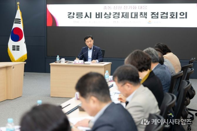 (케이시사타임즈) 강릉시는 24일 시청 8층 상황실에서 중동상황 장기화에 따른 유가 상승 및 원자재 수급 차질 등 지역경제 전반에 미치는 영향을 점검하고 선제적 대응 방안을 마련하기 위해 비상경제대책 점검회의를 개최했다.