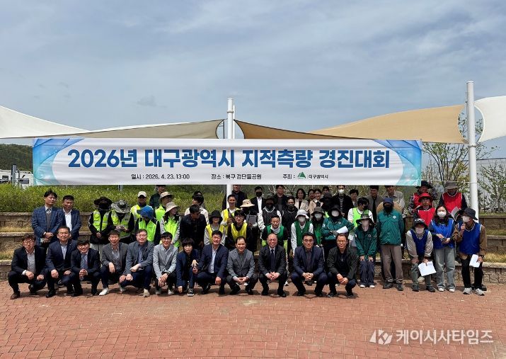 (케이시사타임즈) 대구광역시는 4월 23일 북구 검단들공원에서 9개 구·군 지적공무원들이 참여하는 ‘2026년 지적측량 경진대회’를 개최했다. 이번 대회 결과, 중구가 최우수상의 영예를 안았으며, 북구와 동구가 각각 우수상과 장려상을 받았다.