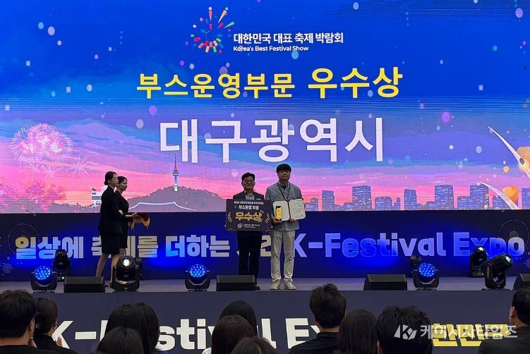 (케이시사타임즈) 대구문화예술진흥원 문화예술본부는 지난 4월 17일~19일, 수원컨벤션센터에서 열린 제6회 대한민국대표축제엑스포에 대구 지역 대표 축제 브랜드 ‘판타지아대구페스타’ 홍보로 부스운영부문 우수성을 인정받아 ‘베스트 축제 어워드 부스운영 부문 우수상’을 수상했다.