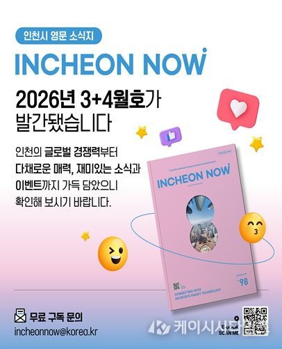 (케이시사타임즈) 인천광역시는 도시의 혁신적인 정책과 차별화된 매력을 전 세계에 소개하는 영문소식지 '인천나우(Incheon Now)' 3·4월호(Vol. 98)를 발간했다고 밝혔다.