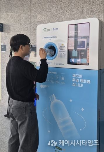 투명 페트병 무인회수기는 인공지능(AI)과 사물인터넷(IoT)기술을 활용한 스마트 재활용 시스템으로, 내용물을 비우고 라벨을 제거한 투명페트병을 1인당 하루 50개까지 투입 가능하고, 개당 10원의 포인트가 적립되는 방식이다.
