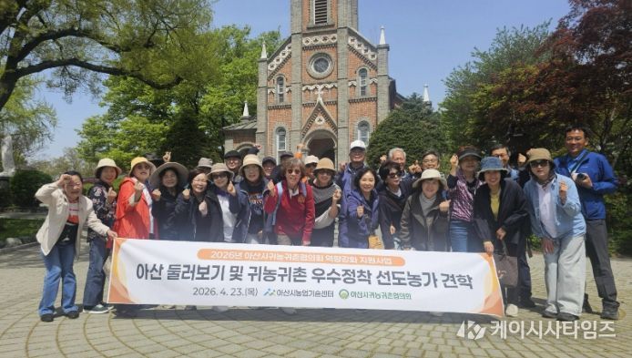 (케이시사타임즈) 아산시귀농귀촌협의회는 「2026년 아산시귀농귀촌협의회 역량강화 지원사업」의 일환으로 지난 23일 “아산 둘러보기(염치· 선장·인주)”를 진행했다. 이번 활동은 귀농귀촌인의 안정적인 아산 정착과 공동체 역량 강화를 위해 마련됐다.