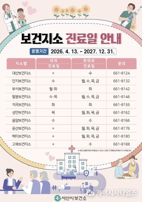 (케이시사타임즈) 충남 서산시가 지역 의료 공백 최소화를 위해 관내 10개 보건지소의 기능을 개편했다고 밝혔다.