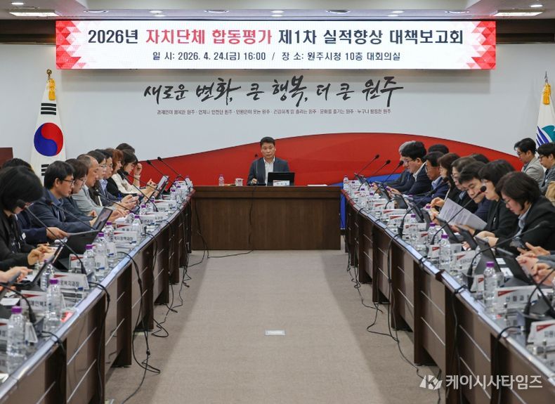 (케이시사타임즈) 원주시는 지난 24일 시청 대회의실에서 ‘2027년(2026년 실적) 자치단체 합동평가 실적향상 대책보고회’를 개최했다.