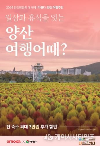 (케이시사타임즈) 양산시는 ‘2026 양산방문의 해’를 맞아 당일형 관광에 치중된 여행 패턴을 관내에서 하룻밤 머무는 ‘체류형 관광’으로 전환하면서 지역 관광 산업에 활력을 불어넣기 위해 추진한 숙박 할인 프로모션 ‘다잇다, 양산 여행주간’이 관광객들의 높은 이용률 속에 개시 일주일 만에 종료됐다고 밝혔다.