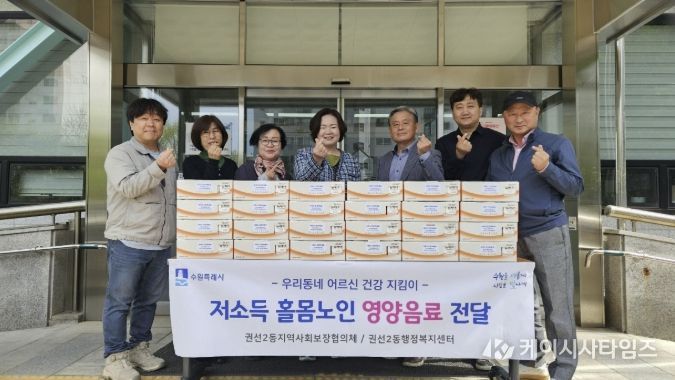 (케이시사타임즈) 수원시 권선구 권선2동 지역사회보장협의체는 지난 23일, 저소득 홀몸노인 건강증진과 정서적 안정을 위한 “우리 동네 어르신 건강지킴이 영양음료 전달사업”을 진행했다.