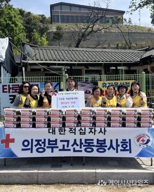 (케이시사타임즈) 의정부시 고산동주민센터는 4월 23일 고산동 적십자봉사회(회장 이미애)가 직접 만든 열무김치 50통을 취약계층을 위해 전달했다고 밝혔다.