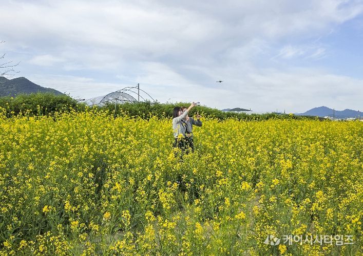 (케이시사타임즈) 남원시 주생면의 옛 활주로 부지가 노란 유채꽃 물결로 뒤덮여 상춘객들의 마음을 설레게 하고 있다.