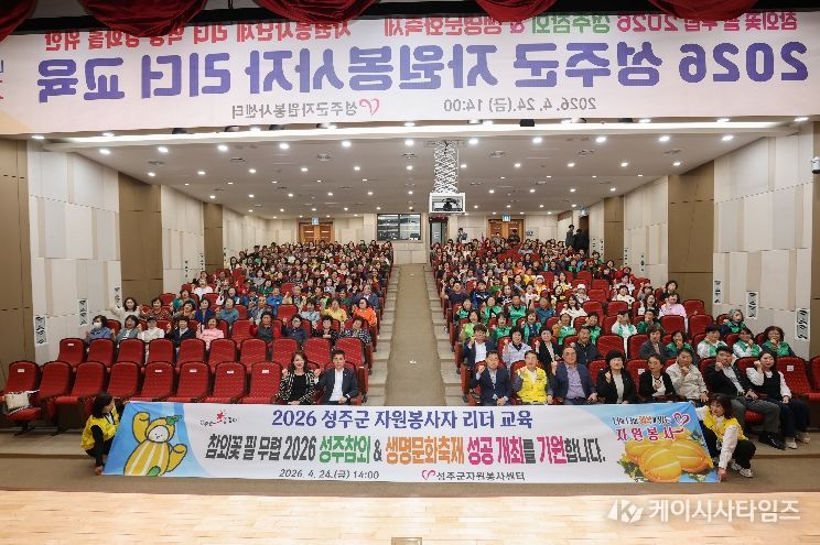 (케이시사타임즈) 경북 성주군자원봉사센터(센터장 이명진)는 지역 공동체의 따뜻한 변화를 이끄는 자원봉사 리더들을 한자리에 모아 의미 있는 교육의 장을 마련했다. 4월 24일 성주군청 대강당에서 열린 '2026 성주군 자원봉사자 리더 교육'은 단순한 역량 강화 교육을 넘어 나눔과 연대의 가치를 되새기고, 다가오는 지역 대표 축제를 함께 준비하는 결속의 자리로 깊은 울림을 전했다.