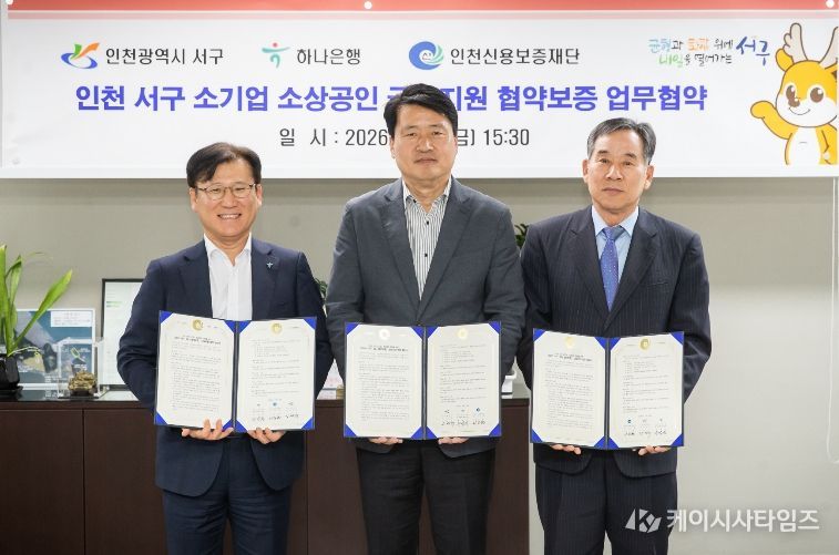 (케이시사타임즈) 인천 서구는 지난 24일 하나은행, 인천신용보증재단과 함께 15억원 규모의 '서구·하나은행 특별지원 협약보증' 및 '인천서구 특례보증업무협약'을 체결했다고 밝혔다.