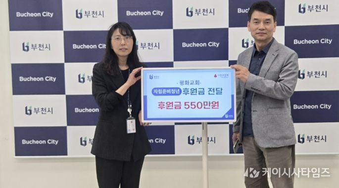 (케이시사타임즈) 부천시는 지난 24일 중동 힐스테이트 프로그램실에서 ‘평화교회 자립준비청년 돕기 후원금 전달식’을 열었다. 이번 전달식은 평화교회가 지역 내 아동복지 향상과 나눔 문화 확산을 위해 마련됐다.