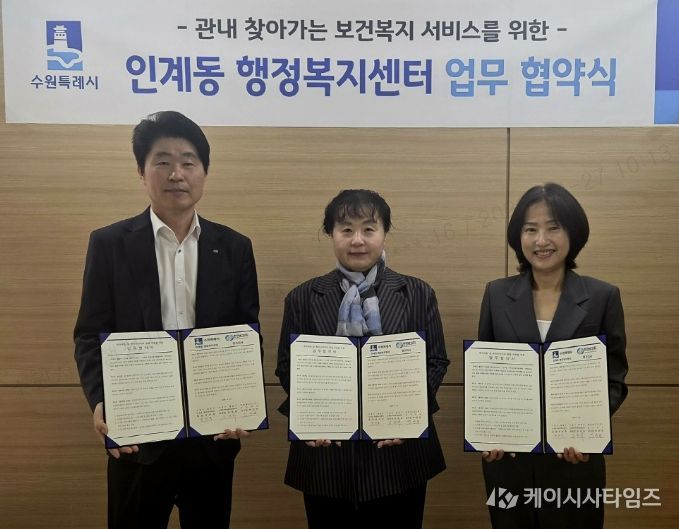 (케이시사타임즈) 수원시 팔달구 인계동은 지난 24일, 지역사회보장협의체과 한전MCS(주) 경기지사 및 직할지점과 함께 취약계층 발굴과 지속적인 인적안전망 활동 참여를 위한 업무 협약을 체결했다.