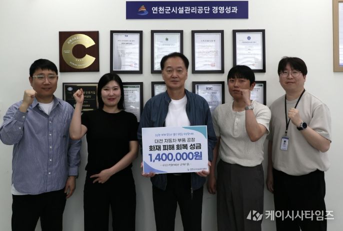(케이시사타임즈) 연천군시설관리공단은 지난 23일 대전 자동차 부품 공장 화재로 피해를 입은 근로자 및 이재민 지원을 위한 성금 1,400,000원을 대한적십자사에 전달했다고 밝혔다.