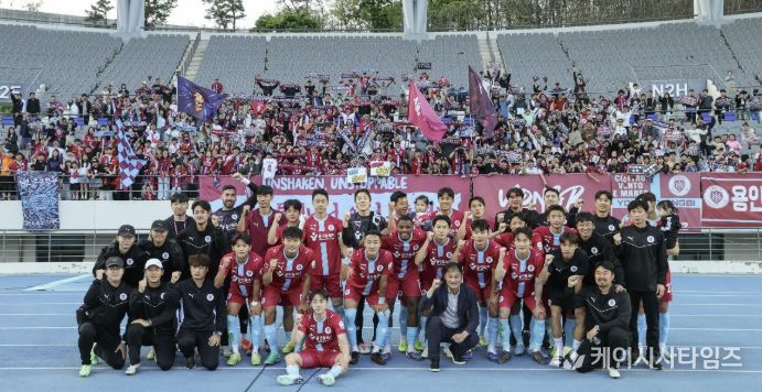 시는 지난 26일 오후 미르스타디움에서 열린 ‘하나은행 K리그2 2026’ 9라운드 홈경기에서 김해FC를 4대 1로 이겼다고 27일 밝혔다.