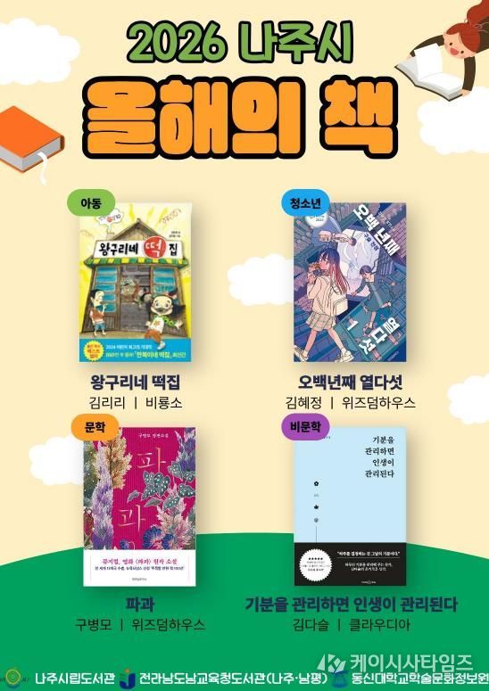(케이시사타임즈) 전남 나주시립도서관은 시민들과 함께 책을 읽고 공감을 나누며 독서 문화를 활성화하기 위한 ‘2026년 나주시 올해의 책’으로 4개 분야별 최종 도서 1권씩, 총 4권을 선정했다고 밝혔다.