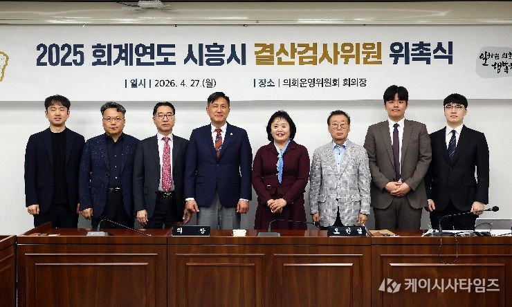 (케이시사타임즈) 경기 시흥시의회가 4월 27일 의회운영위원회 회의장에서 2025회계연도 시흥시 결산검사위원 위촉식을 개최했다.