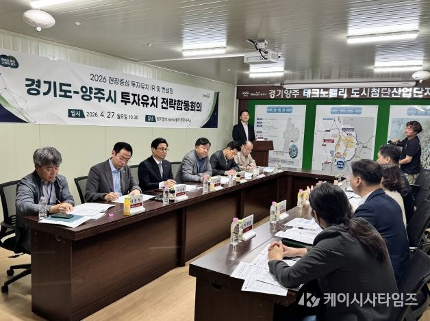 (케이시사타임즈) 경기도는 27일 경기양주 테크노밸리 현장사무소에서 ‘경기도–양주시 투자유치 전략합동회의’를 열고, 양주시 주요 개발사업 현황을 공유하며 투자유치 협력 방안과 실행 전략을 논의했다.