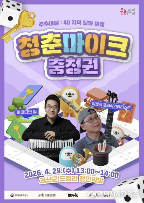 (케이시사타임즈) 충북 괴산군은 지역 공간과 함께하는 거리공연 ‘청춘마이크’가 오는 29일과 5월 3일 두 차례에 걸쳐 개최된다고 밝혔다.