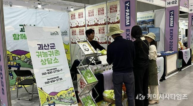 (케이시사타임즈) 충북 괴산군은 지난 24일부터 26일까지 수원컨벤션센터에서 열린 ‘A-FARM EXPO 2026 귀농귀촌박람회’에 참가해 귀농·귀촌을 준비하는 도시민을 대상으로 괴산군의 다양한 정책을 홍보했다고 28일밝혔다.