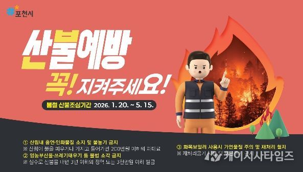 (케이시사타임즈) 포천시는 봄철 건조한 날씨와 강풍으로 산불 발생 위험이 높아짐에 따라 산불조심기간이 종료되는 오는 5월 15일까지 경계를 늦추지 않고 산불예방 활동에 총력을 기울이고 있다.