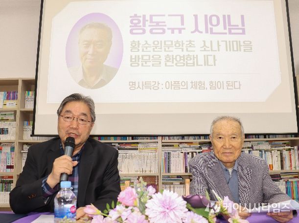 (케이시사타임즈) 황순원 작가의 장남인 황동규(1938~) 시인이 지난 23일 서종면에 위치한 황순원문학촌 소나기마을(촌장 김종회)에서 열린 ‘2026 소나기마을 문학교실’에서 ‘아픔의 체험, 힘이 된다’를 주제로 특별 강연을 진행했다.