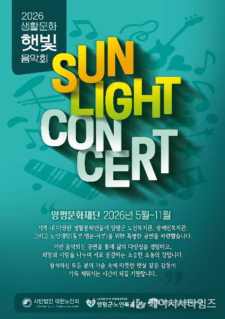 (케이시사타임즈) (재)양평문화재단은 관내 문화 예술 향유 기회를 확대하기 위해 찾아가는 음악회 ‘2026 햇빛 음악회’를 오는 5월 8일부터 본격적으로 운영한다고 밝혔다.
