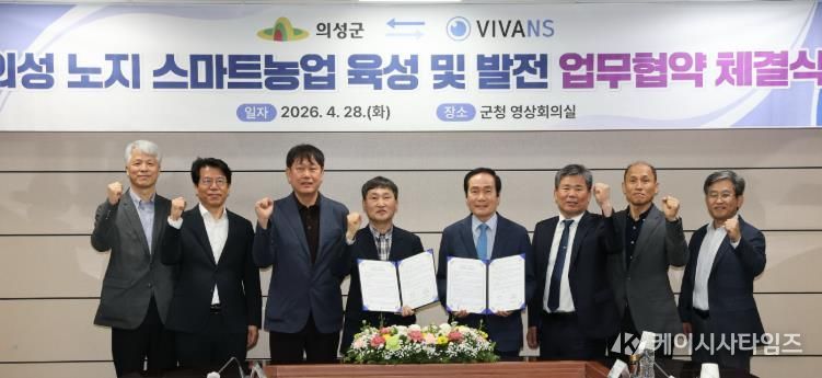 이번 협약은 지난 3월 의성군이 농림축산식품부 주관 ‘2026년 노지 스마트농업 육성지구’로 최종 선정됨에 따라, 민관 협력을 통해 전국을 대표하는 노지 스마트농업 모델을 구축하기 위해 마련됐다.