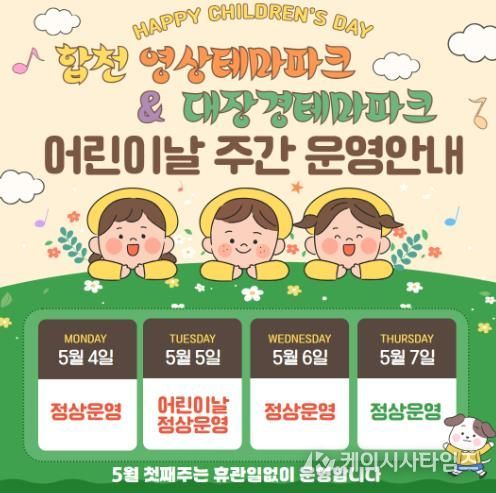 (케이시사타임즈) 합천군은 5월 가정의 달을 맞아 5월 첫째 주(5.4.~5.6.)동안 합천영상테마파크와 대장경테마파크를 휴관일 없이 정상 운영한다고 28일 밝혔다.