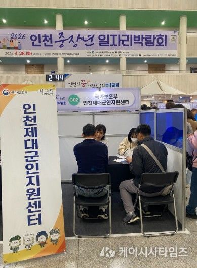(케이시사타임즈) 국가보훈부 인천보훈지청 제대군인지원센터는 2026. 4. 28.에 인천광역시 주최로 개최된 ‘2026 인천 중장년 일자리박람회’에 협업기관으로 참여하여 중장년 제대군인의 효율적인 취업지원을 위한 구인구직 행사를 진행했다.